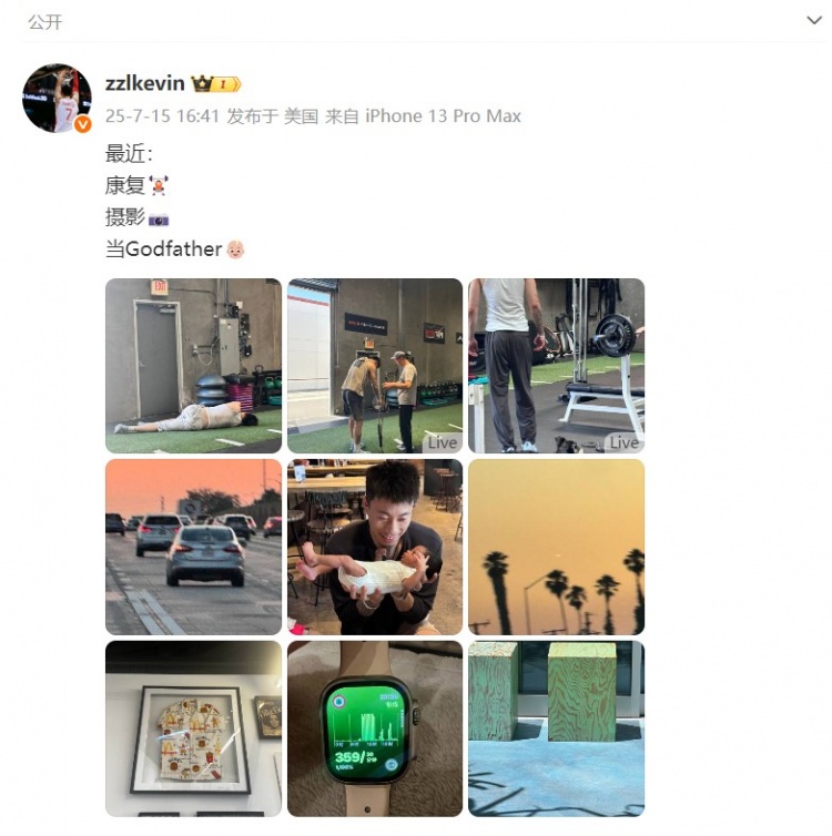 7月15日讯 张镇麟今天在社媒上晒出一波图片,谈到了自己的近况。